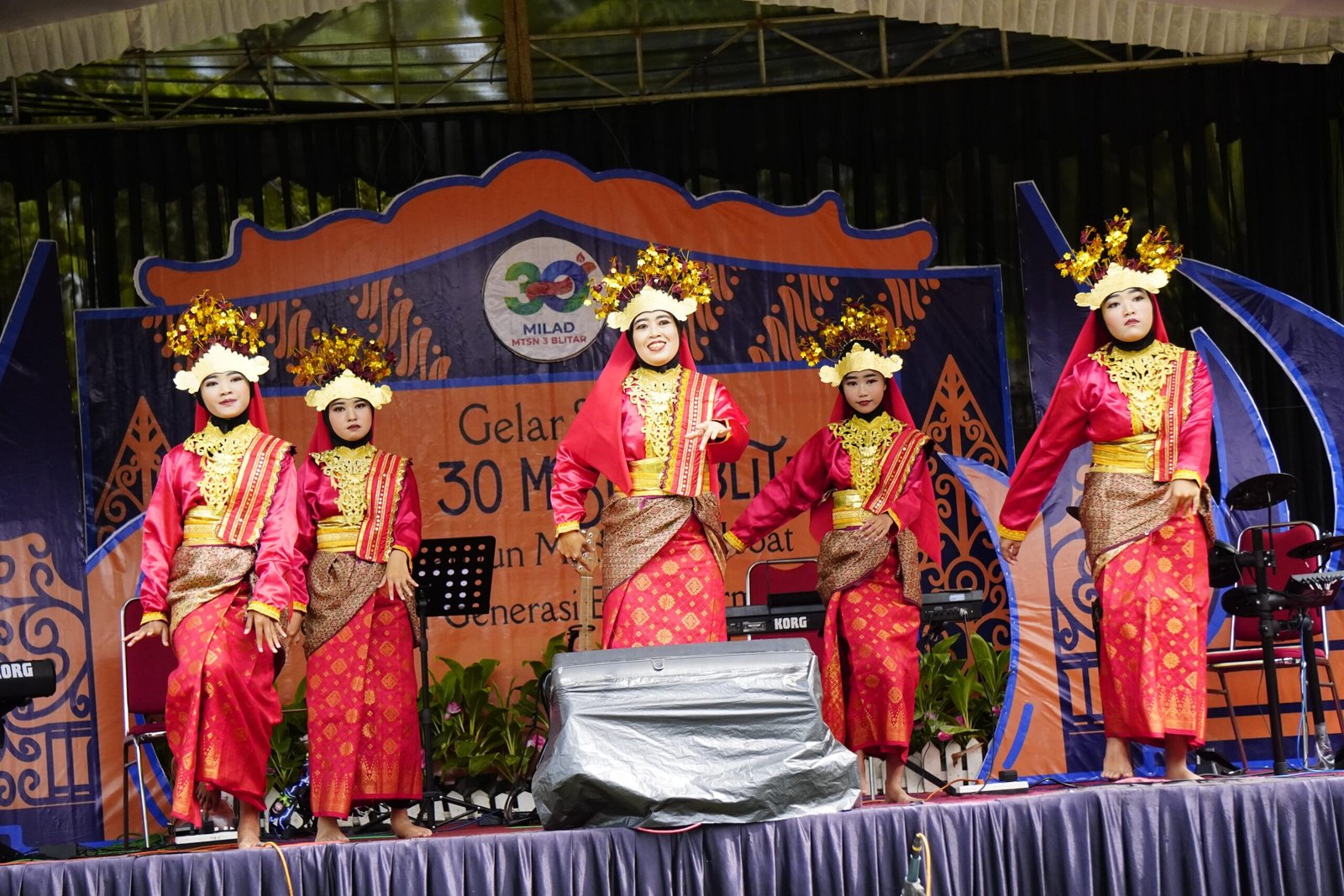 Suasana tampak lebih bersemangat dan hidup ketika gelar pentas seni diisi oleh grub band dan tim pramuka MTsN 3 Blitar. Selain itu, juga ada persembahan tari Melayu dari kelas 7B didampingi oleh wali kelasnya. Tak kalah menarik lagi lagu kemesraan dinyanyikan bersama-sama juga oleh Kepala Madrasah, Bapak H. Choirun Ni’am, M.Pd., dan guru-guru lainnya menambah suasana kehangatan diantara mereka.