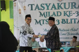Selasa (25/11/ 2025) Keluarga besar MTsN 3 Blitar mengadakan upacara dalam rangka memperingati Hari Ulang Tahun ke-80 Persatuan Guru Republik Indonesia dan Hari Guru Nasional. Petugasnya adalah Bapak/Ibu guru yang sudah berlatih beberapa hari sebelumnya. Kebetulan pula bertepatan juga dengan Milad ke-30 MTsN 3 Blitar. Semua petugas menjalankan tugasnya dengan baik dan penuh semangat. Peserta pun mengikuti upacara di lapangan MTsN 3 dengan khidmat.